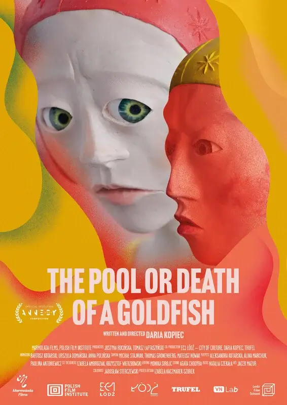 Poland 2025"The Pool or Death of a Goldfish” is a story about a possessive relationship between a mother and her daughter. The main character, through unexpressed anger and rebellion against her mother, transforms into a titular goldfish. Unspoken words, gestures, and repressed childhood emotions manifest in harsh treatment of both herself and others. The film is framed by a compositional structure in which the main character finally allows herself to feel grief, thereby entering a process of self-acceptance and forgiveness.