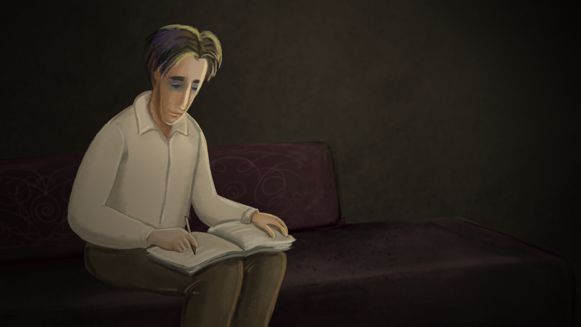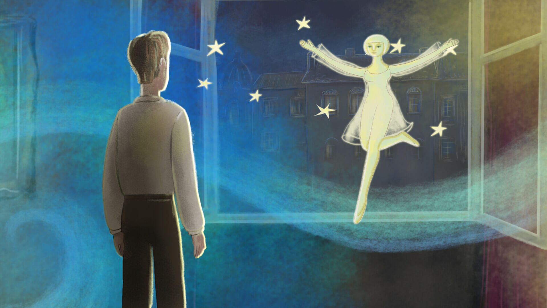 Bulgaria 2025The film is inspired by the poetry of Alexander Vutimski - Bulgarian poet of the generation of the 1930-40 years. The young man lives in two realities - in the solitude of his room from where he observes life outside through the window and in the imaginary incarnation of his second self - Blue Boy, with whom he shares the poetic world of his fantasy.