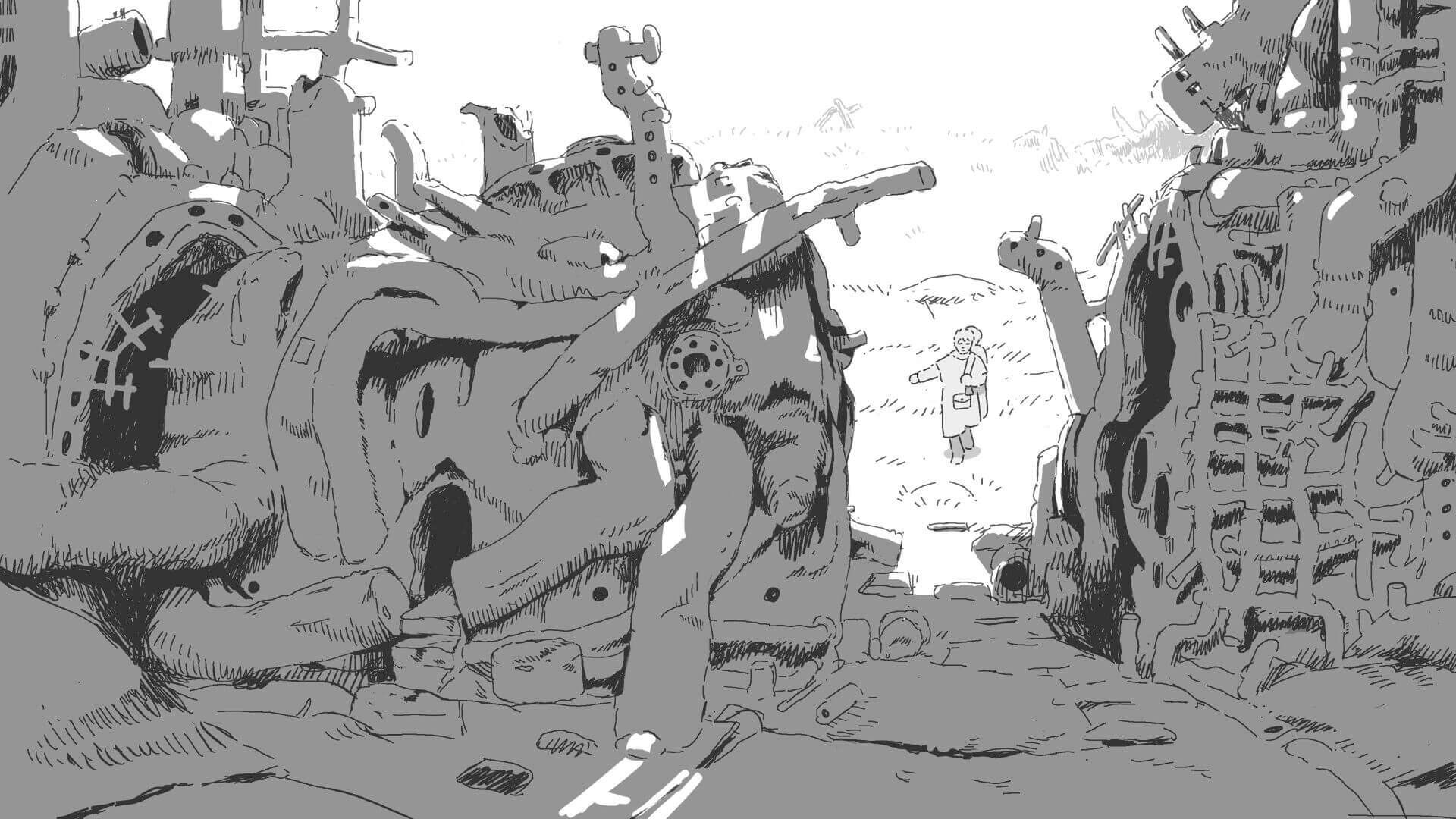 France 2026The journey of a solitary pilgrim, transporting a mysterious young girl to her final resting place. It is the story of a funeral procession through the ruins of a lost civilization, vast cemetery of robots populated by luminous creatures who seem intrigued by their presence.
