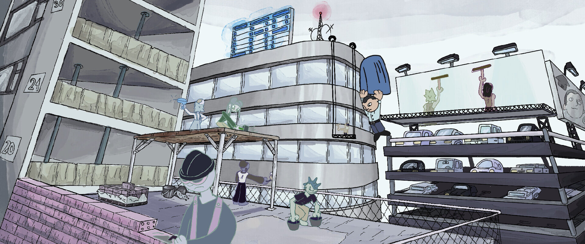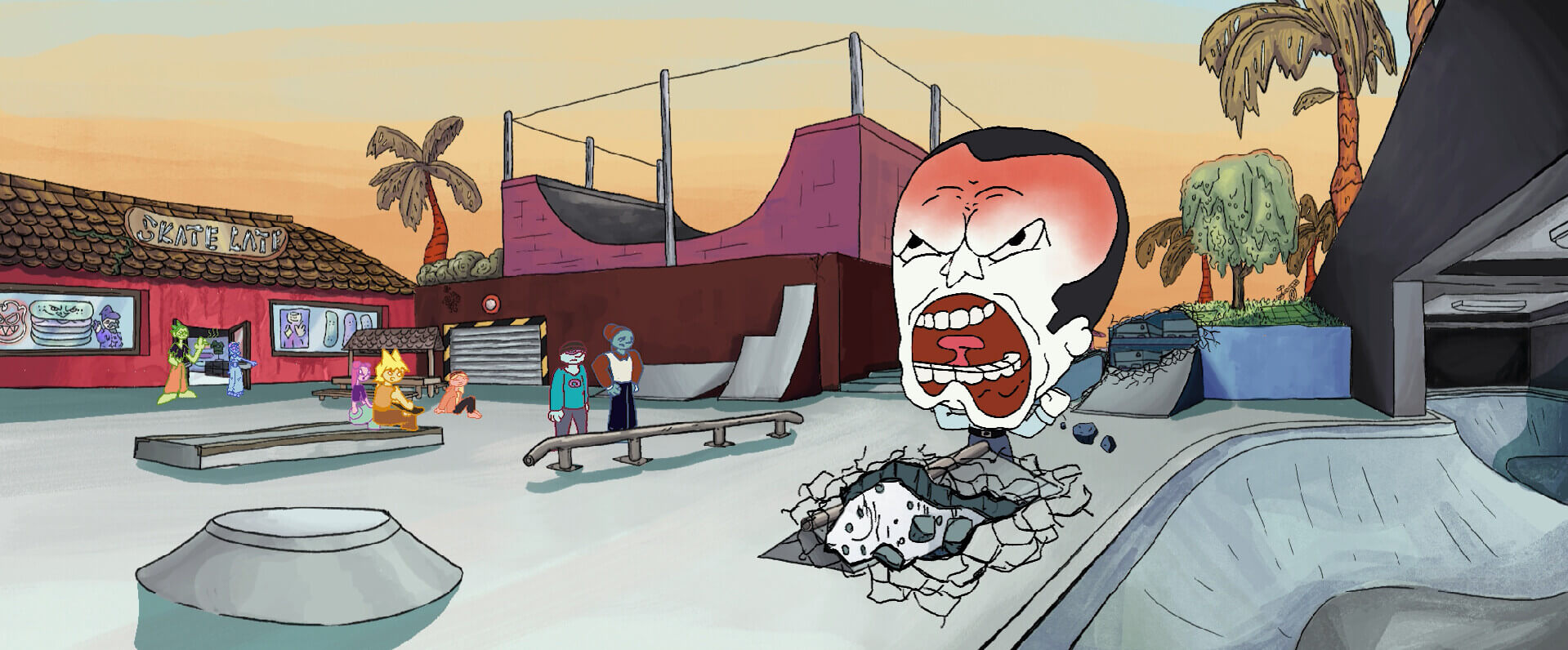 Teenagers reclaim public spaces as their playground, until their joy collides with the vision of an angry capitalist. Through his power, the spaces transform, shifting from places of freedom into a manufactured “paradise.”