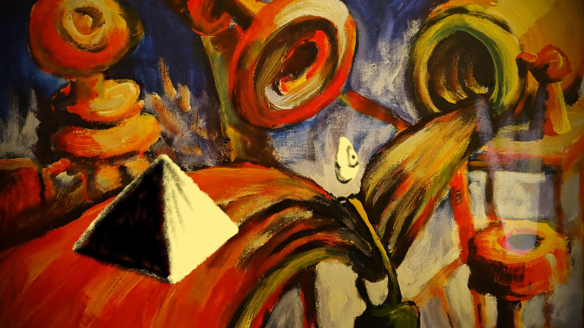 A geometric shape chases a blob around an underground complex.