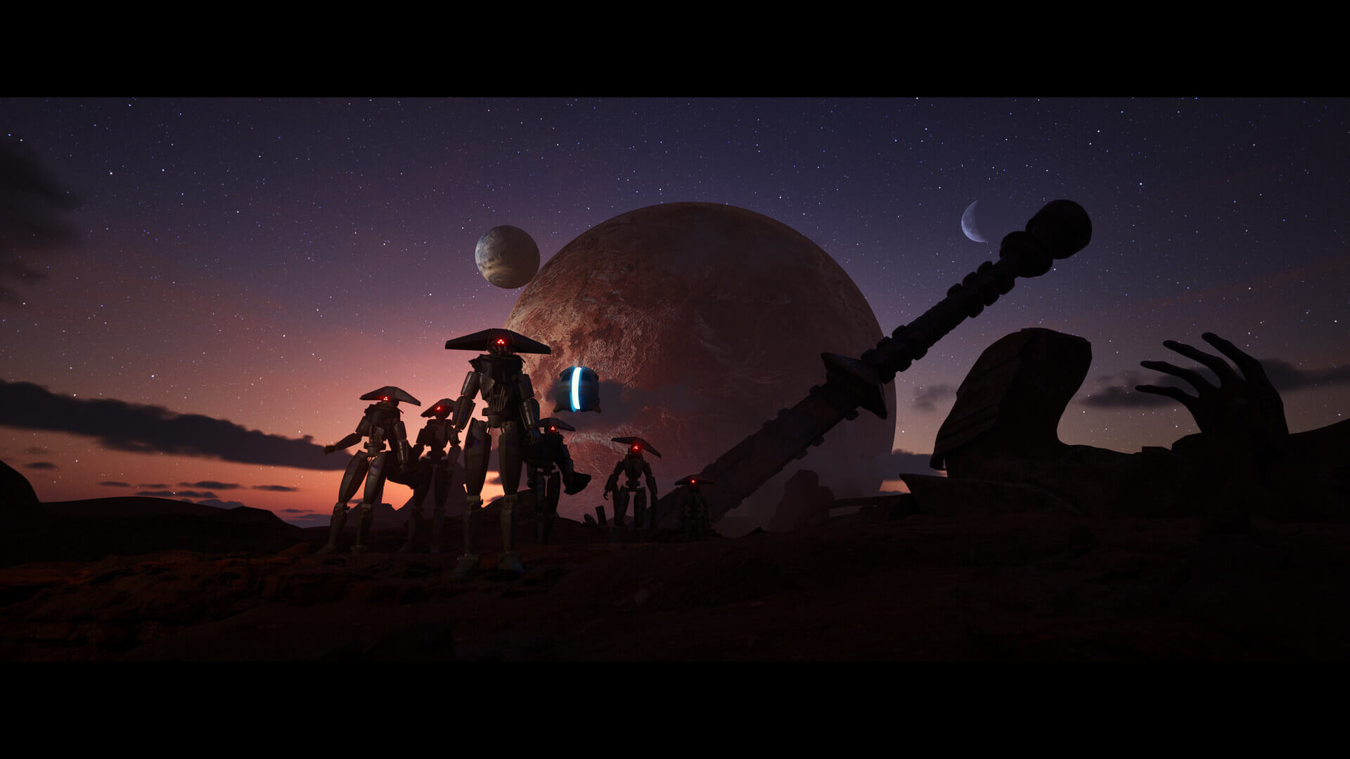 A fleet of robots wanders across space looking for a new planet for civilization. A short film done completely by humans using Unreal Engine, Houdini, Maya, Substance Painter, Da Vinci Resolve and After Effects.